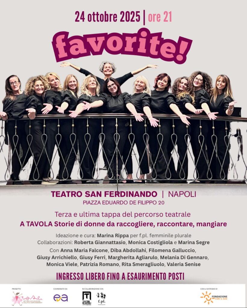 Dopo l’ ASSAGGIO SCENICO aperto al pubblico a giugno 2024 e RICETTE/DICETTE tenuto a gennaio 2025, l’ultima tappa dal titolo FAVORITE! si svolgerà quest’anno, in autunno, sempre al Teatro San Ferdinando.
