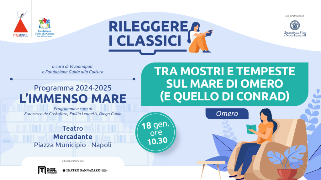 La terza edizione della rassegna Rileggere i Classici 2024 apre il nuovo anno con un incontro di grande richiamo e interesse: sabato 18 gennaio, al teatro Mercadante, L’Odissea di Omero sarà il libro protagonista. Introdurrà Diego Guida, Presidente della Fondazione Guida alla Cultura ETS, i coordinatori dell’incontro: Francesco de Cristofaro Docente di Letterature Comparate della Università Federico II, Emilia Leonetti Presidente Vivoanapoli APS.