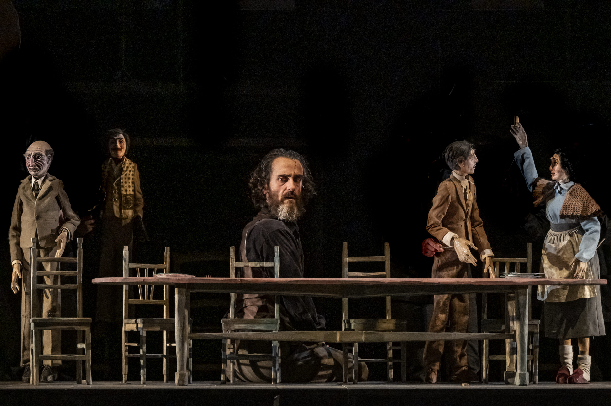 Questa messinscena non convenzionale vede il talento di Luca Saccoia impegnato in un’interpretazione straordinaria, dove un unico attore interagisce con sette pupazzi realizzati dallo scenografo Tiziano Fario, che firma anche l’intera scenografia. Le figure animate prendono vita grazie a un gruppo di manovratori formato attraverso un laboratorio di formazione curato da Irene Vecchia, aperto ai giovani del territorio. Fedele al testo di Eduardo, lo spettacolo ripercorre le vicende della famiglia Cupiello, trasformandole in un viaggio onirico che risuona nell’immaginario e nella memoria di ogni spettatore. Al centro di questo sogno teatrale è Tommasino, che rivive quel fatidico “Natale” attraverso il teatro di figura, accompagnando il pubblico in una rappresentazione che mescola comicità, tragicità e nostalgia. Luca Saccoia, nelle vesti di Tommasino, diventa l’interprete di una tradizione, testimone di un rito che si rinnova ogni anno. I pupazzi e le figure in scena rappresentano i frammenti di un sogno/incubo, un presepe vivente che riaffiora puntualmente, popolato dai conflitti e dalle speranze di Luca Cupiello.