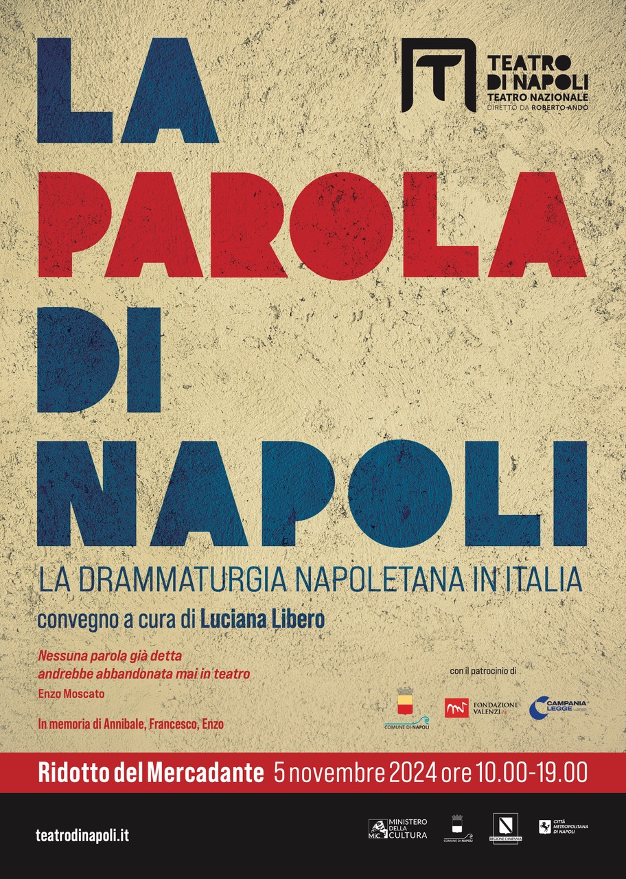 IL 5 NOVEMBRE AL RIDOTTO DEL MERCADANTE IL CONVEGNO LA PAROLA DI NAPOLI. LA DRAMMATURGIA NAPOLETANA IN ITALIA A CURA DI LUCIANA LIBERO