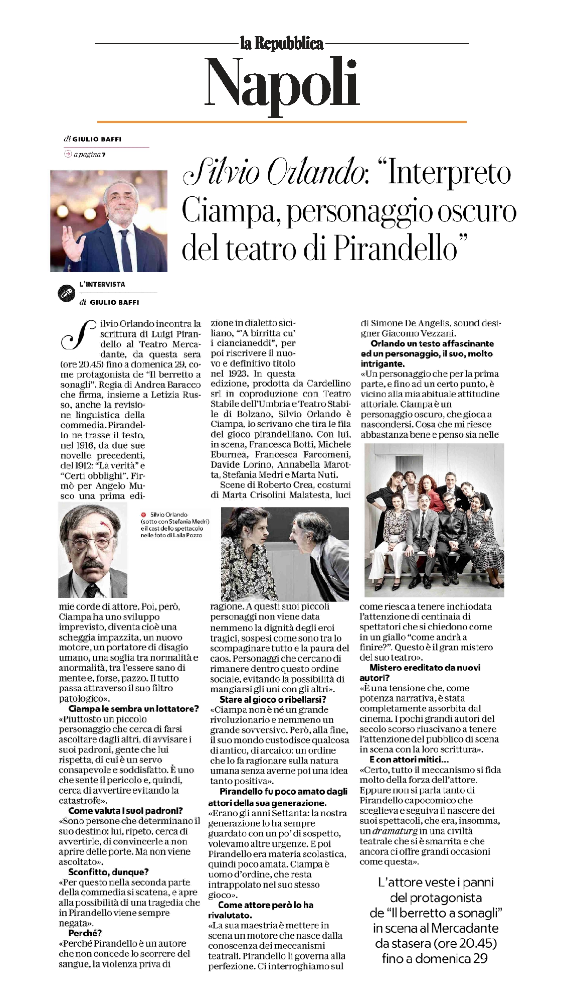 L’umiltà dell’uomo Ciampa giganteggia, il ridicolo lo infanga; è come se una lama inesorabile gli spaccasse sempre più profondamente il petto, per mostrare il suo cuore e allora si difende con parole vive e umanamente strazianti. Comincia il suo percorso con una semplicità che gli consente di avere aspetti comici, di una comicità ironica con cui si prende ferocemente gioco dell’ottusità degli altri, per poi precipitare, nella sua umiliazione da vinto, in una sorta di esaltazione lirica che fa transitare continuamente lo spettatore dal riso all’angoscia.