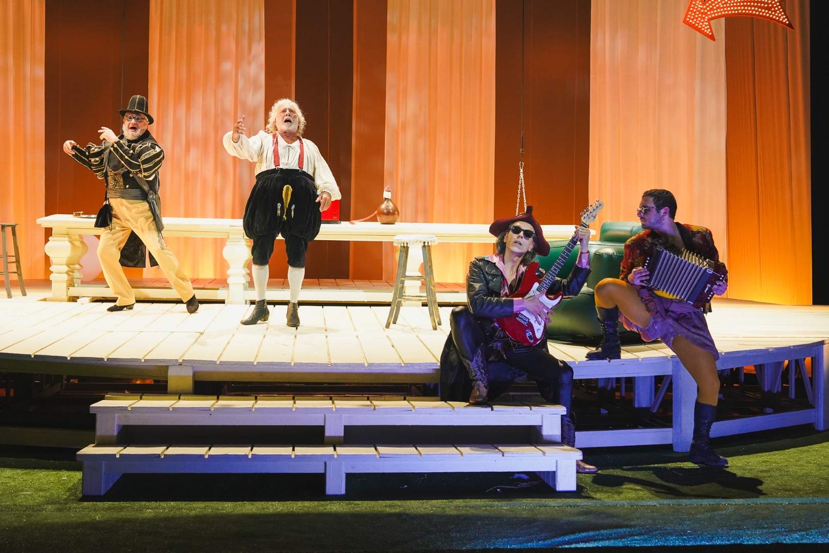 La produzione delle commedie di Shakespeare è caratterizzata da una forte componente popolare: un linguaggio e una forma artistica capaci di rivolgersi a un pubblico ampio, in grado di cogliere sensazioni e significati anche al di là della comprensione intellettuale. Il teatro shakespeariano ha conosciuto fortuna nelle riduzioni oratoriali dell’Ottocento e del Novecento, con traduzioni ispirate al melodramma italiano e allo stile dei libretti verdiani. Lo stesso Giuseppe Verdi si è confrontato con Shakespeare in opere come Macbeth, Otello e Falstaff. In questa messinscena, Mariano Bauduin propone una lettura che fonde elementi della tradizione elisabettiana con quelli del teatro popolare. Lo spazio scenico immaginato richiama un Globe Theatre effimero, sorto in un bosco fantastico, mentre i personaggi – tutti interpretati da uomini – rievocano la farsa carnevalesca e il teatro parodico, in un chiaro richiamo alla comicità grottesca e al varietà. Falstaff è il fulcro della narrazione: figura vitale e ambigua, incarna una saggezza popolare che accompagna il giovane Enrico V nel suo percorso di formazione. Shakespeare, ispirandosi alla figura storica di Oldcastle, ne fa un personaggio simbolico, capace di collegare il re al suo popolo e di rappresentare l’umano nella sua complessità. A questa dimensione si unisce il regno delle fate, simbolo di castità e ordine morale, legato alla propaganda elisabettiana. Le scene fantastiche evocano anche tradizioni popolari italiane, in particolare i riti dei benandanti friulani, mostrando corrispondenze sorprendenti tra culture distanti.