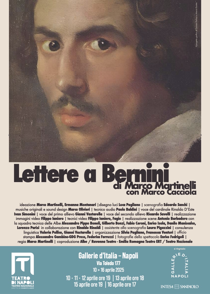 Attraverso una drammaturgia in cui la voce monologante dell’attore e quella di Bernini si rincorrono e sovrappongono senza soluzione di continuità a generare sulla scena, come scolpendo nel vuoto, presenze, figure e ricordi, l’opera di Martinelli ci mostra un Seicento che parla di noi, sospeso tra il secolo della Scienza nuova e l’attuale imbarbarimento, sempre più incombente.