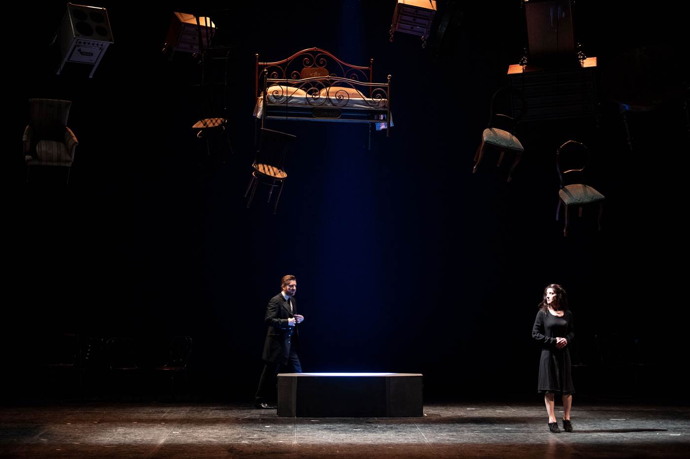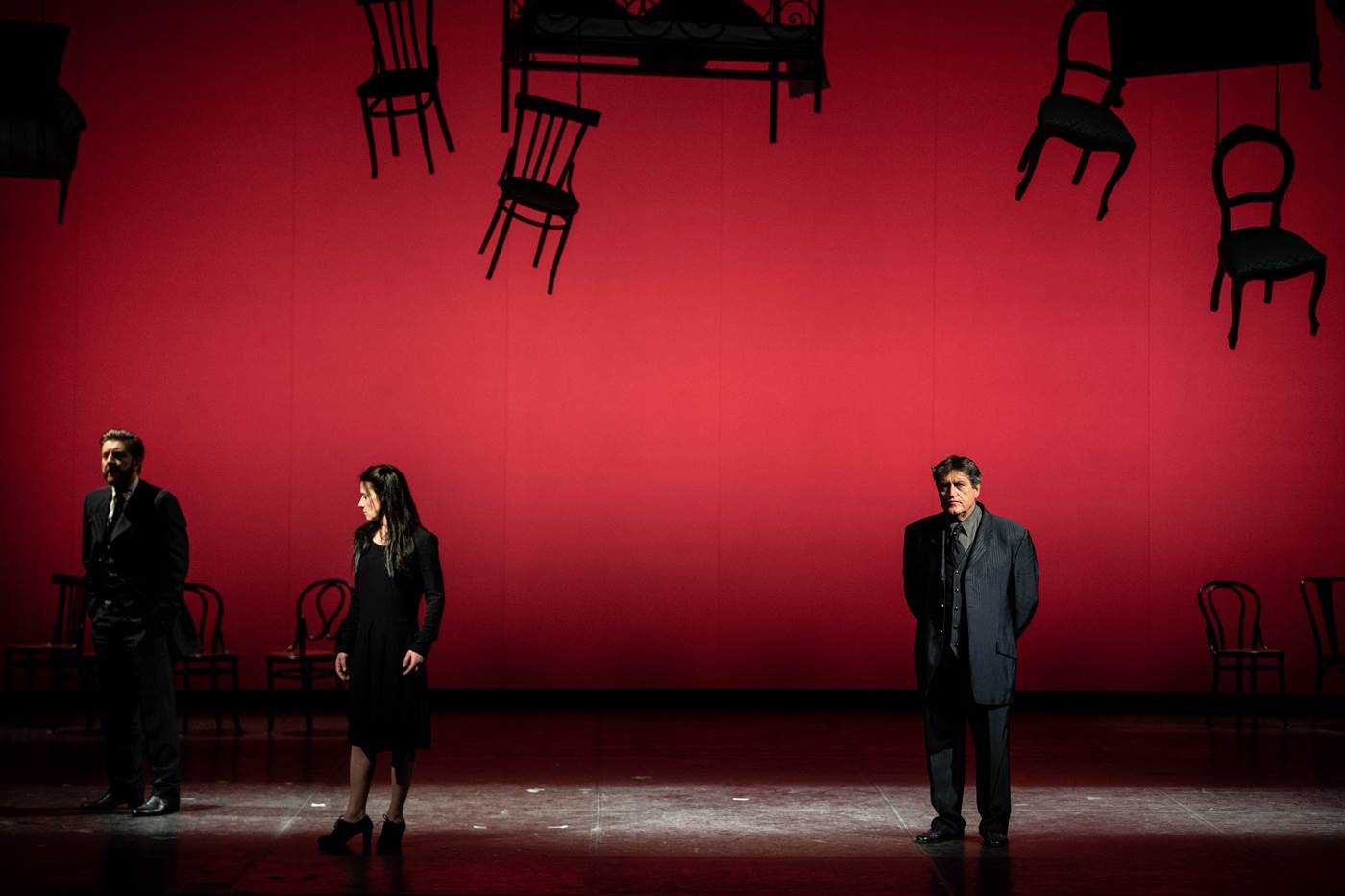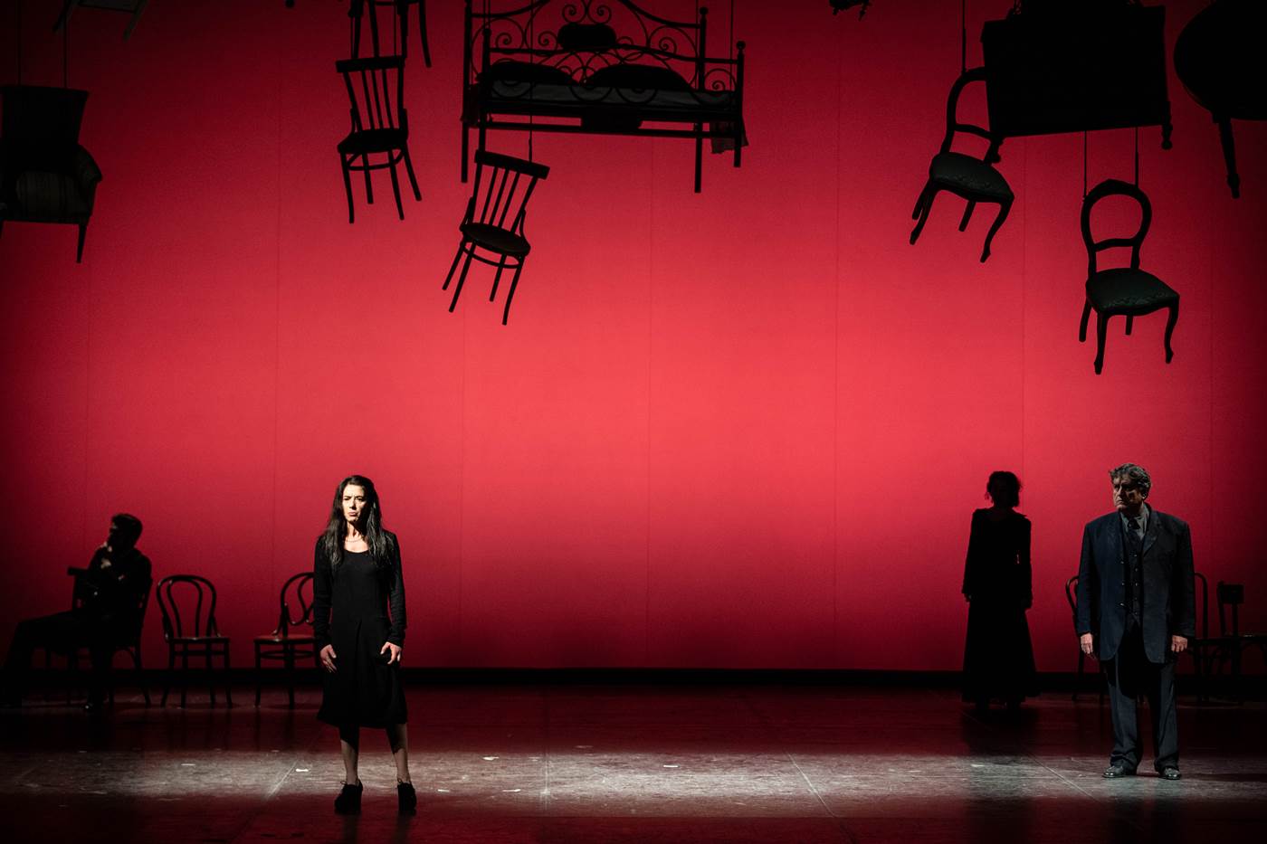 L’atmosfera generale della messinscena, deprivata di ogni tentazione naturalistica, assume piuttosto l’atmosfera di un “noir” .