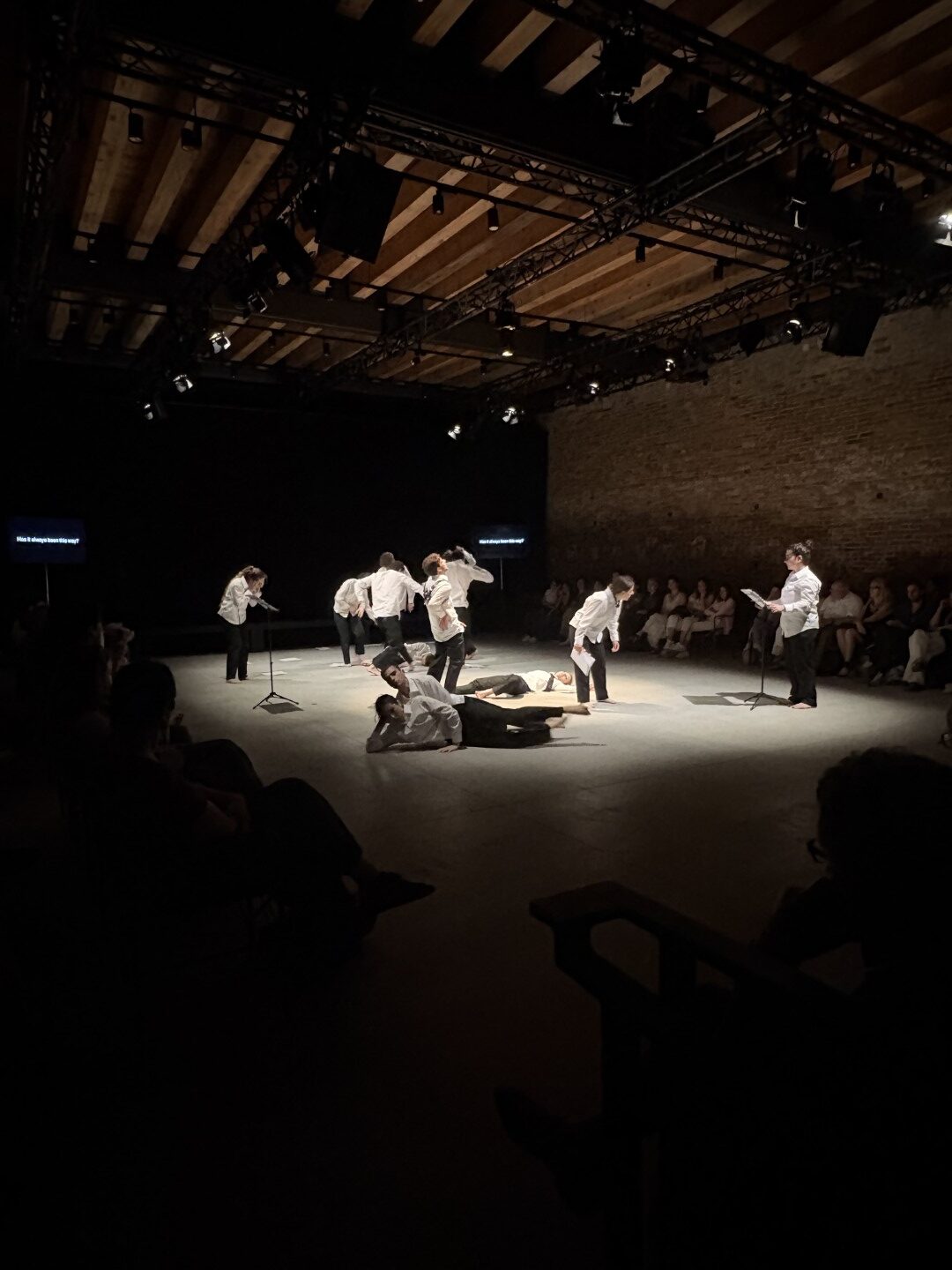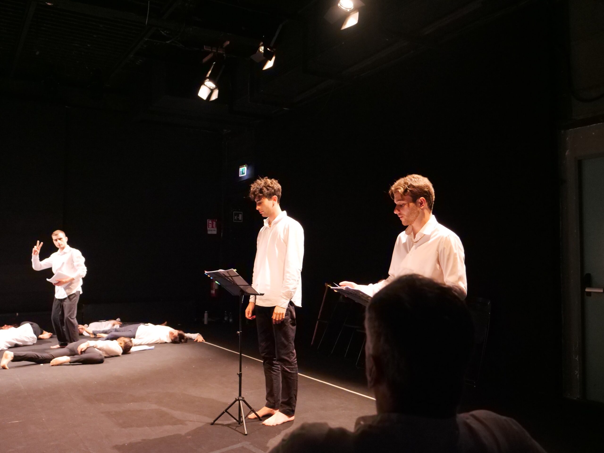 Il testo parla di un ragazzo che va a un’orgia per trovare George, l’amore della sua vita. Un’orgia che si costruisce attraverso scene giustapposte, in cui il protagonista incontrerà perversioni, droghe, animali, amiche, nemici, amanti, consigli, sofferenze, consapevolezze. Esiste un mondo sotterraneo di luoghi, di situazioni, di parole che sfuggono dalla narrazione condivisa. Una volta che si esce da una narrazione preesistente ci si scontra con la difficoltà di costruirne una.