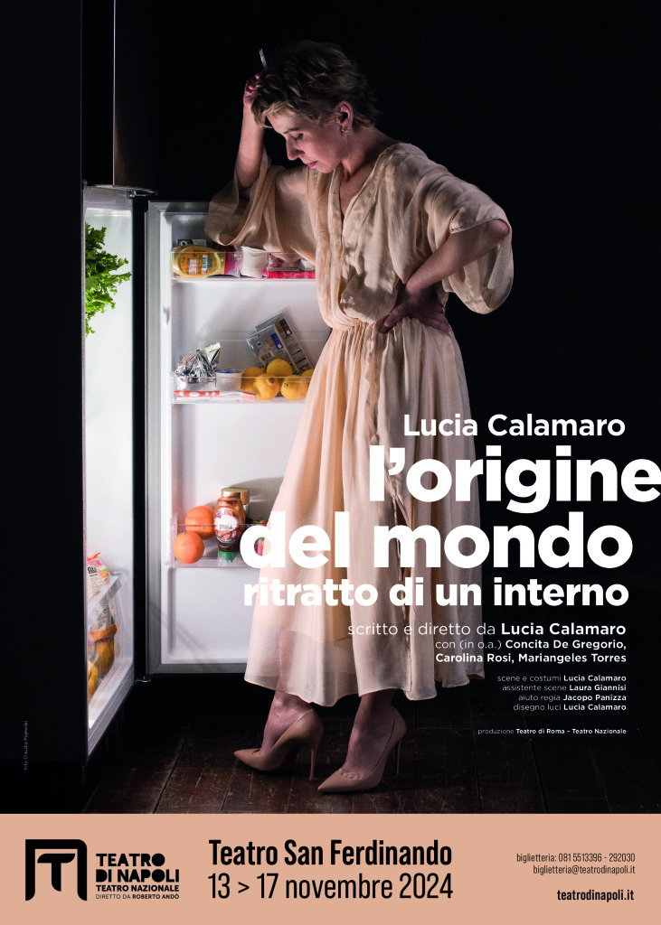 Da questi dati, che rendono L’origine del Mondo violentemente contemporaneo, l’intento di riallestire questo spettacolo e per questa lucida e puntuta scelta, non posso che ringraziare profondamente il Teatro di Roma che ha accettato di produrlo e di presentarlo sul palco magnifico del Teatro Argentina. E con lui, ringrazio profondamente Concita De Gregorio, Carolina Rosi e Mariangeles Torres che condividono questa ripresa: l’attualità, la necessità e l’urgenza di un ritratto esteticamente elaborato dello stato d’animo più diffuso al mondo, perché fra le varie piaghe che colpiscono oggi l’umanità, la depressione primeggia.