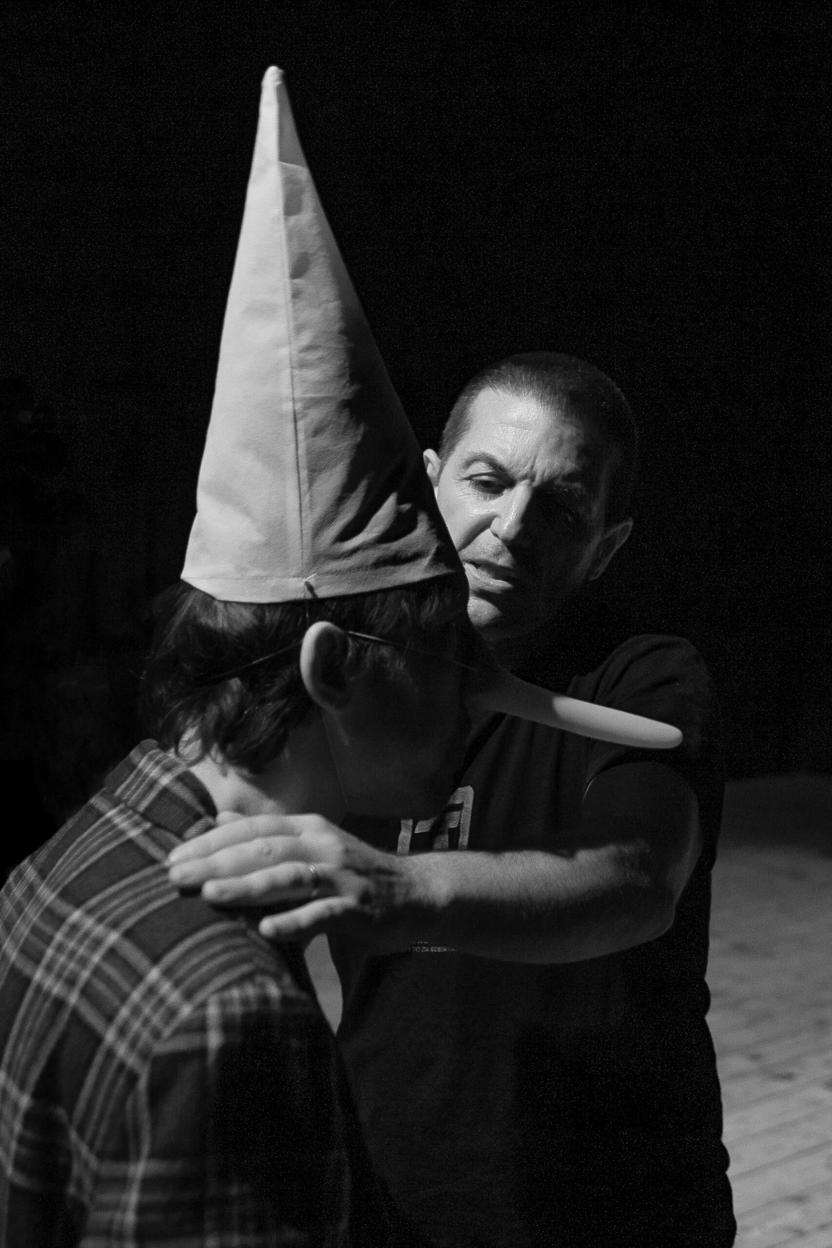 Davide Iodice nelle sue note spiega che Pinocchio pone la questione del rapporto con la genitorialità; l’ispirazione è connessa al momento in cui Pinocchio ritrova suo padre nella pancia della balena. Geppetto gli dice che tra un po’ la candela si spegnerà e rimarranno al buio. Pinocchio risponde: “E dopo?” e Geppetto non riesce a trovare la risposta, la soluzione la troverà Pinocchio. Questo “dopo” è un po’ la domanda principale che si pone qualsiasi genitore di un ragazzo ‘straordinario’ come preferisco dire, scrive Davide Iodice nelle note, nel senso di extra-ordinario, cioè fuori dall’ordinario. La risposta non spetta solo alla famiglia, ma anche alla società, alla comunità, a chi si occupa di assistenza. Geppetto è un genitore che ha un figlio generato da un pezzo di legno e vuole a tutti i costi renderlo “normale”. Noi che lavoriamo con la diversità e la fragilità, sappiamo come il concetto di normalità sia molto malinteso e pericoloso. Sento l’esigenza, dopo anni, di fare un vero e proprio manifesto per e sulla disabilità. Spesso c’è tanta retorica, tanta carità un po’ penosa. Quello della disabilità è un mondo molto complesso e ricco, c’è una volontà di espressione da parte di questi ragazzi, di essere visti per quello che sono. Ai ragazzi spiego che la “normalità” è il diritto ad avere momenti di felicità, di espressione, di condivisione”.