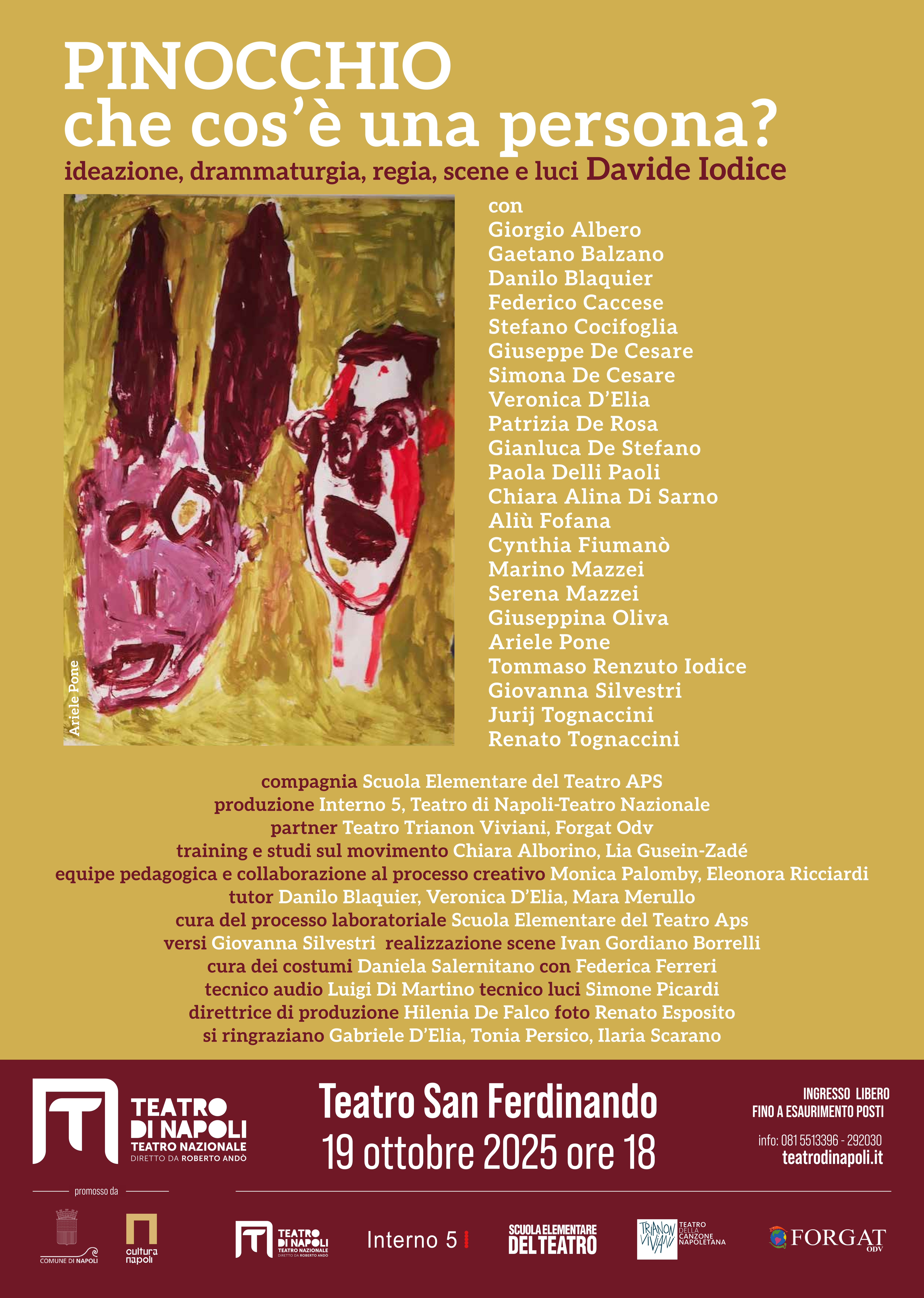 Con Pinocchio / che cos’è una Persona? per la regia di Davide Iodice e la produzione di Interno5 e del Teatro Nazionale di Napoli, la Compagnia ha intrapreso un significativo percorso che ha fin qui ottenuto importanti riconoscimenti come il Premio Anct e il Premio Speciale Ubu 2024.