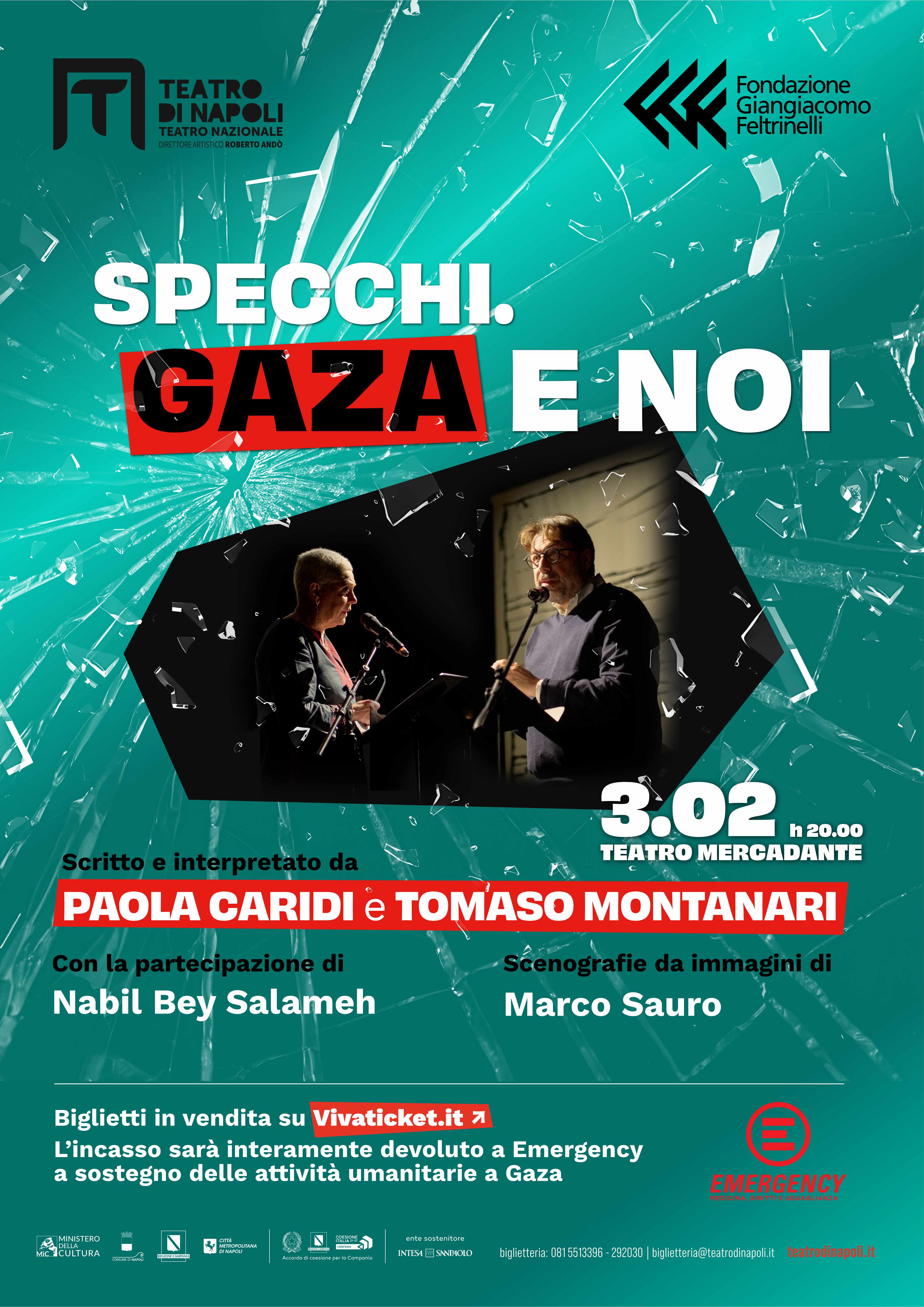Specchi. Gaza e noi è il terzo appuntamento del ciclo di eventi organizzati al Teatro Mercadante che ha visto la partecipazione di Massimo Cacciari in Segni di apocalisse. La catastrofe culturale dell’Occidente, e di Anna Foa e Paolo Di Paolo in Quale pace. Israele, la Palestina e noi.