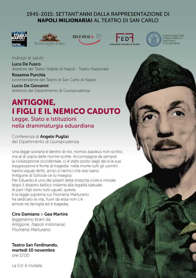 Siamo lieti di invitare il pubblico, il prossimo martedì 10 novembre 2015 dalle ore 17.00 presso il Teatro San Ferdinando per la conferenza ANTIGONE, I FIGLI E IL NEMICO CADUTO - Legge, Stato e Istituzioni nella drammaturgia eduardiana, a cura [...]