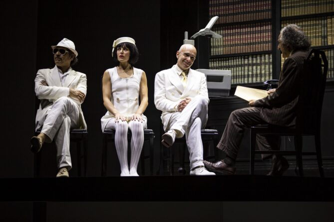 La lingua, la musica, e la cultura Yiddish, quell’inafferrabile miscuglio di tedesco, ebraico, polacco, russo, ucraino e romeno, la condizione universale dell’Ebreo errante, il suo essere senza patria sempre e comunque, sono al centro di Oylem Goylem. Si potrebbe dire che lo spettacolo ha la forma classica del cabaret comunemente inteso. Alterna infatti brani musicali e canti a storielle, aneddoti, citazioni che la comprovata abilità dell’intrattenitore sa rendere gustosamente vivaci. Ma la curiosità dello spettacolo sta nel fatto di essere [...]